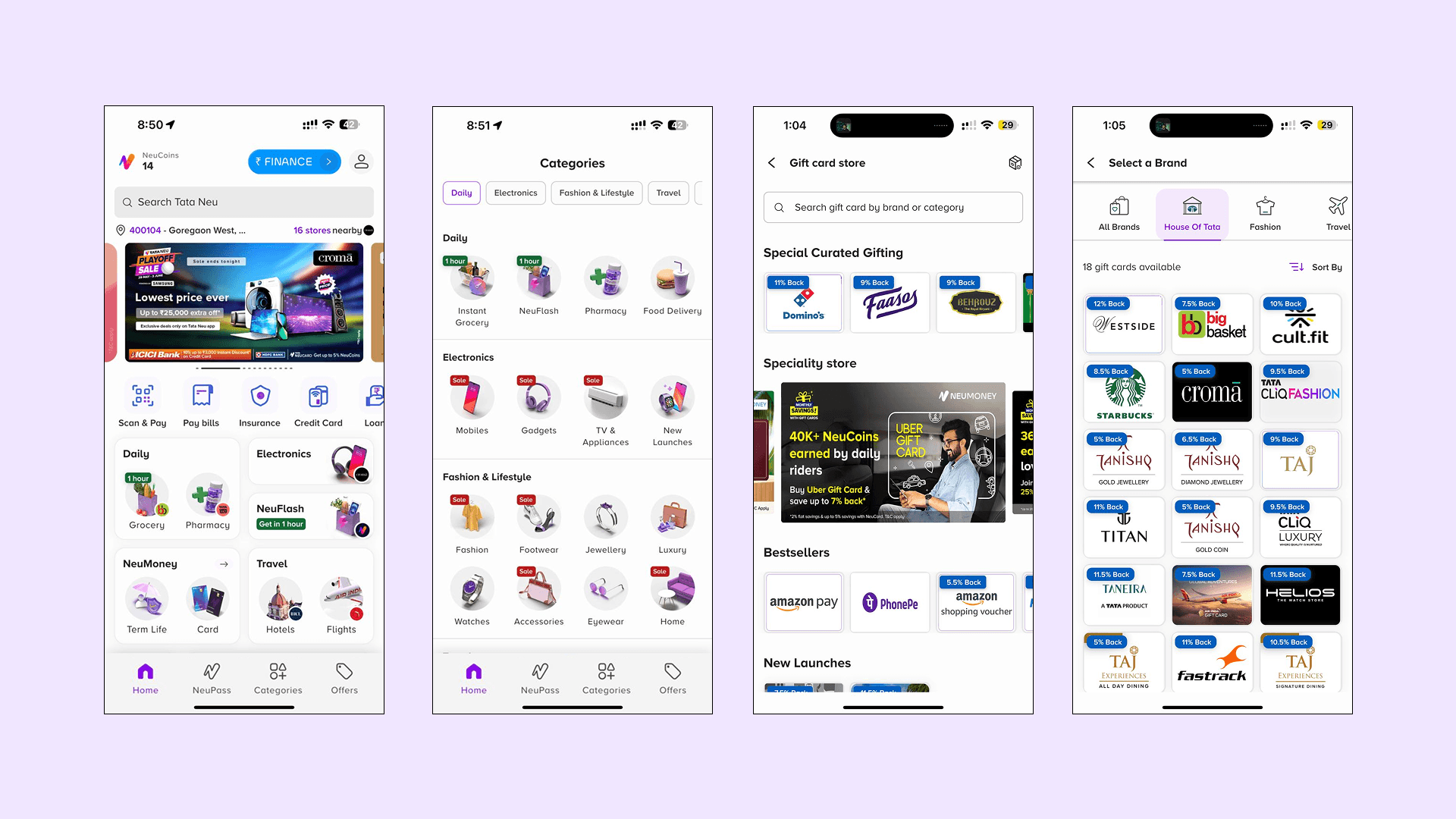 We observed TATA NEU needs to increase its organic segment share by capitalising on the higher margins, better retention rates, and stronger customer intent observed in app conversions. We found that gift cards offer higher margins, better retention, and stronger customer intent. By leveraging these benefits, we plan to enhance the app with simplifying this gift card journey in a few taps