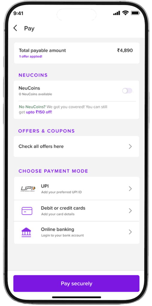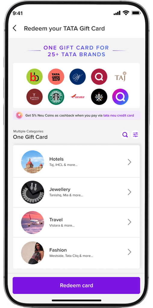 Selects Offerings/Products - Chooses from a wide range of Tata Neu services as per preference, card redeemed